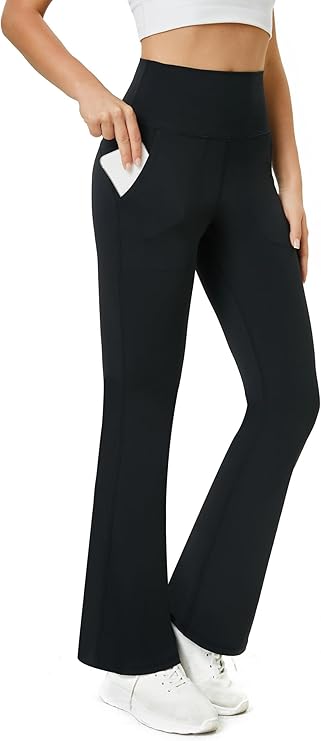 Womens Flare Leggings with Tummy Control Crossover Waist and Wide Leg