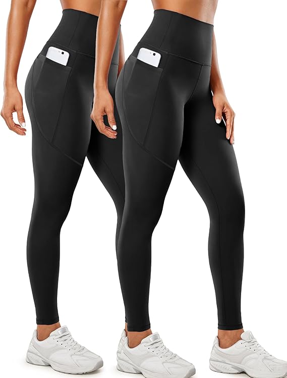 2 Pack Leggings with Pockets for Women 25" Gym Butt Lifting High Waisted Yoga Pants Athletic Workout Leggings