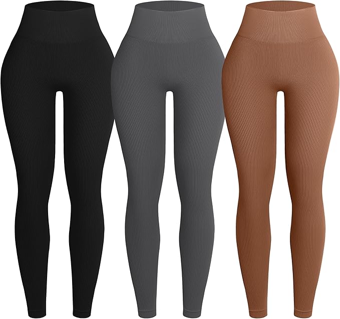 3 Piece Ribbed Seamless Leggings for Women High Waist Workout Gym Athletic Yoga Pants