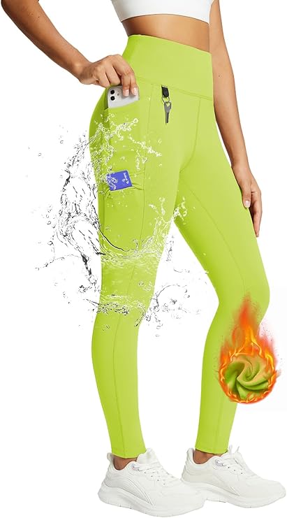 Fleece Lined Leggings Women,Water Resistant Winter Thermal Leggings for Women, Thick Warm Lined Yoga Pant Pockets