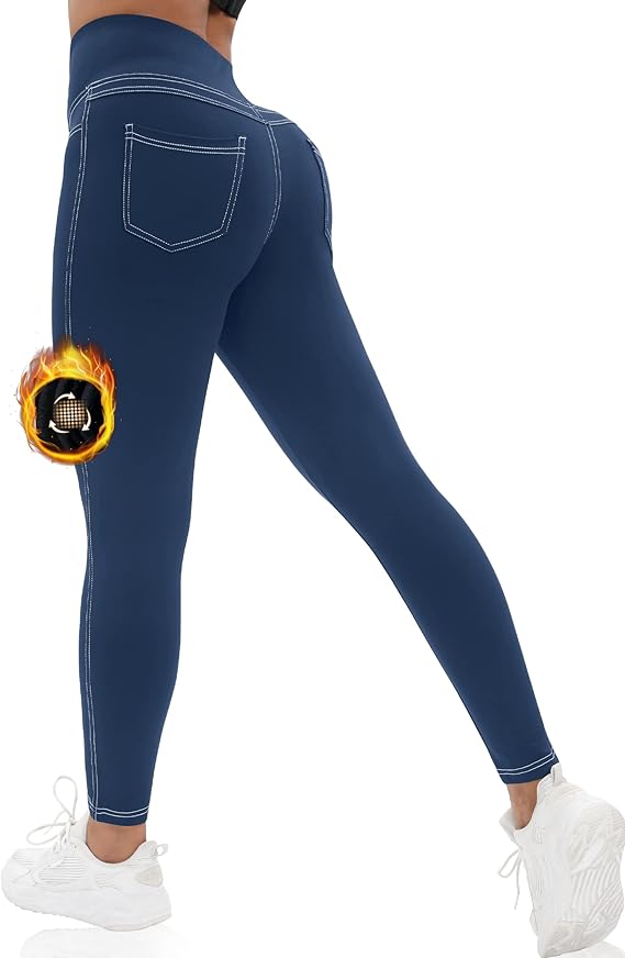 Fleece Lined Leggings for Women with Pockets Winter Warm High Waisted Yoga Pants Running Tights